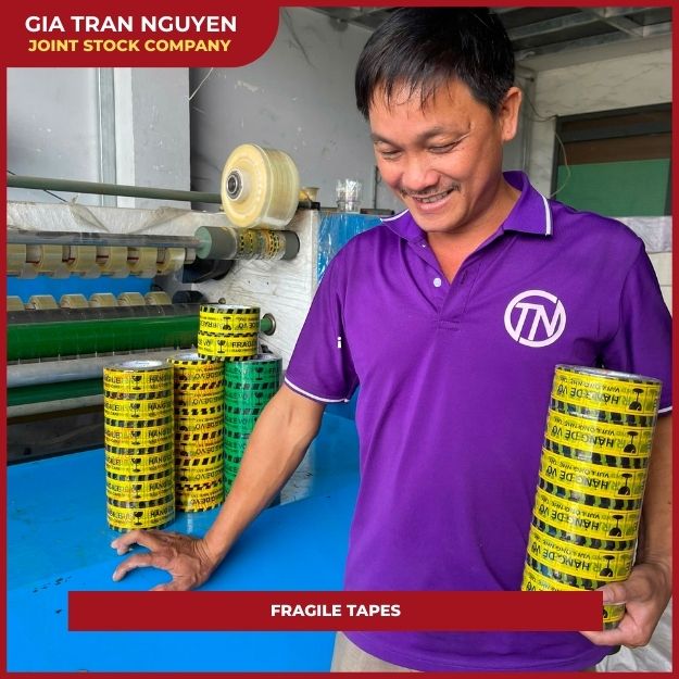 Băng keo hàng dễ vỡ ( Fragile Tape ) Gia Trần Nguyễn là giải pháp vật tư đóng gói được phát triển theo tiêu chí ổn định – bền bỉ – phù hợp vận hành thực tế. Sản phẩm đáp ứng tốt các yêu cầu kỹ thuật trong đóng thùng, niêm phong và vận chuyển, đặc biệt với những đơn hàng cần độ an toàn cao như hàng dễ vỡ, hàng lưu kho dài ngày hoặc giao nhận liên tỉnh.
